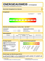 | Der Energieausweis für bestehende Gebäude ist in Deutschland zum 1. Januar 2008 eingeführt worden. Von diesem Termin an muss das Dokument bei Verkauf oder Neuvermietung einer Immobilie vorliegen.